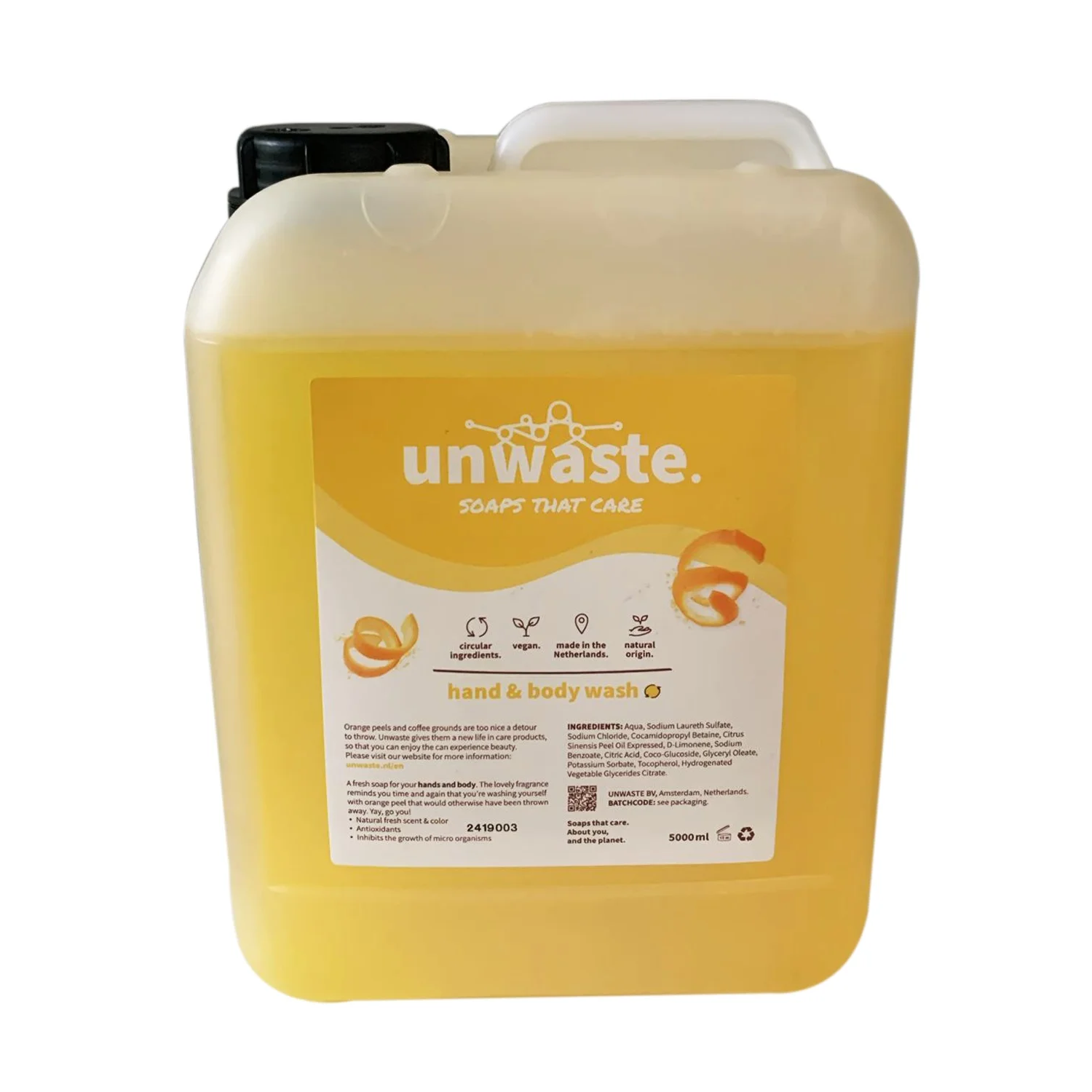 Unwaste hand + body wash, sinaasappel schil, 5L